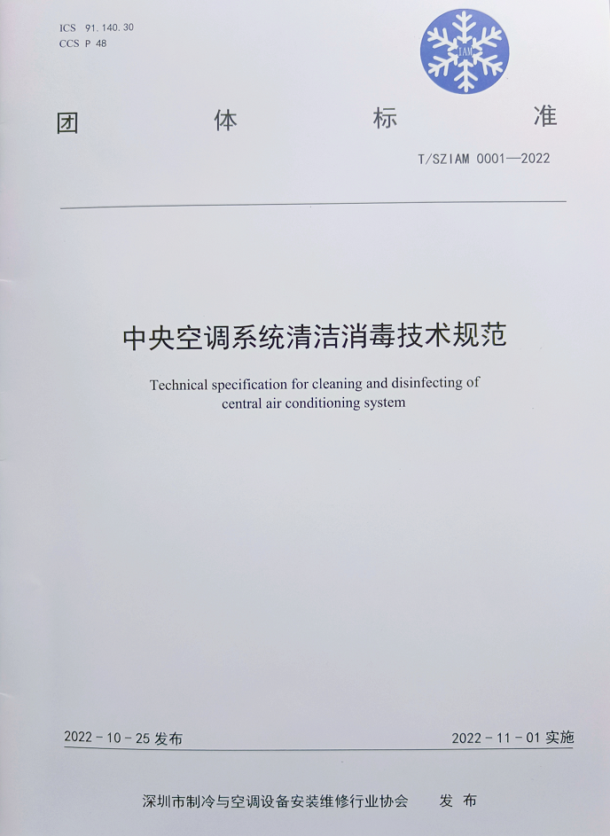 近日,由深圳市制冷與空調設備安裝維修行業協會(簡稱深冷協)主導發起、深圳市億天凈化技術有限公司參編的《中央空調系統清潔消毒技術規范》T/SZIAM0001-2022團體標準正式發布實施。該標準主要對中央空調系統的清潔和消毒提出了一整套完整的專業技術規范、標準以及相關的具體操作流程、作業方法等,對中央空調系統乃至整個制冷行業的清潔消毒技術的發展具有非常重要的意義。