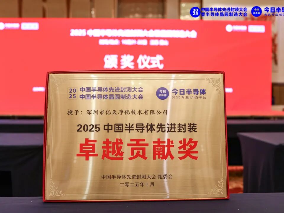 億天凈化作為半導體潔凈領域專業企業,全程深度參與大會,不僅以交流與分享的姿態,與行業同仁共尋發展機遇,更憑借在半導體潔凈領域的突出成就與深度貢獻,一舉斬獲 “2025 中國半導體先進封裝卓越貢獻獎”,成為大會焦點之一。