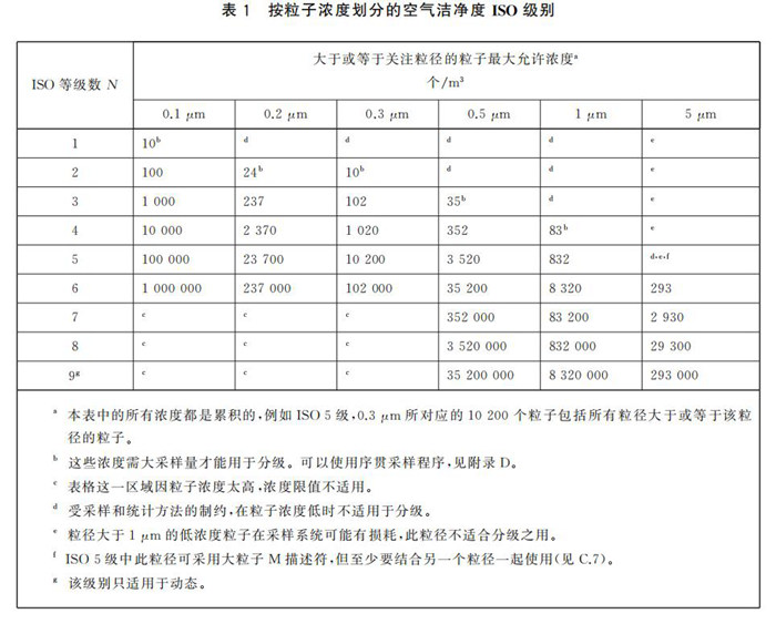 ISO 14644-1:2015“潔凈室及相關受控環境 第1部分:按粒子濃度劃分空氣潔凈度等級”中將